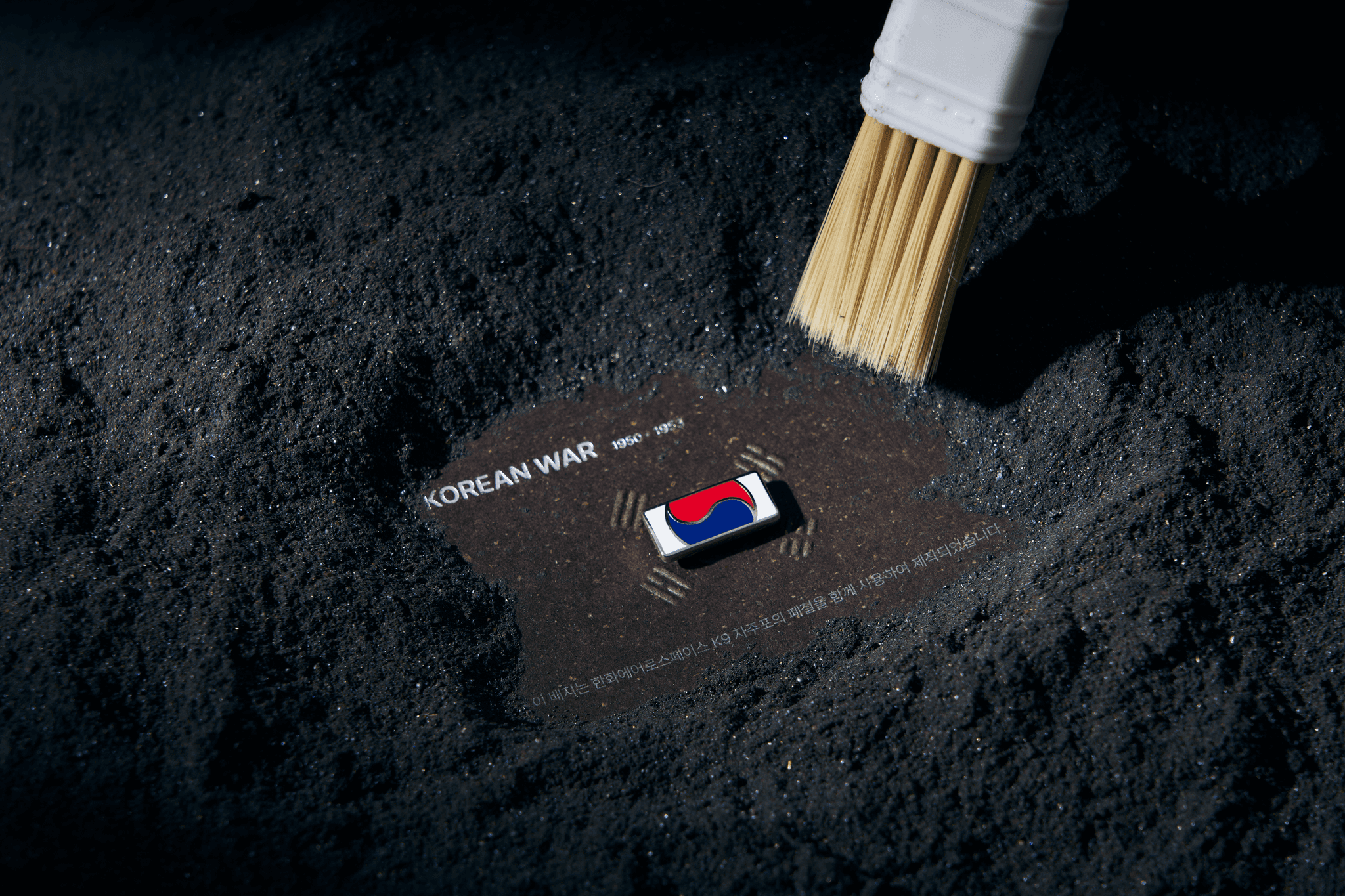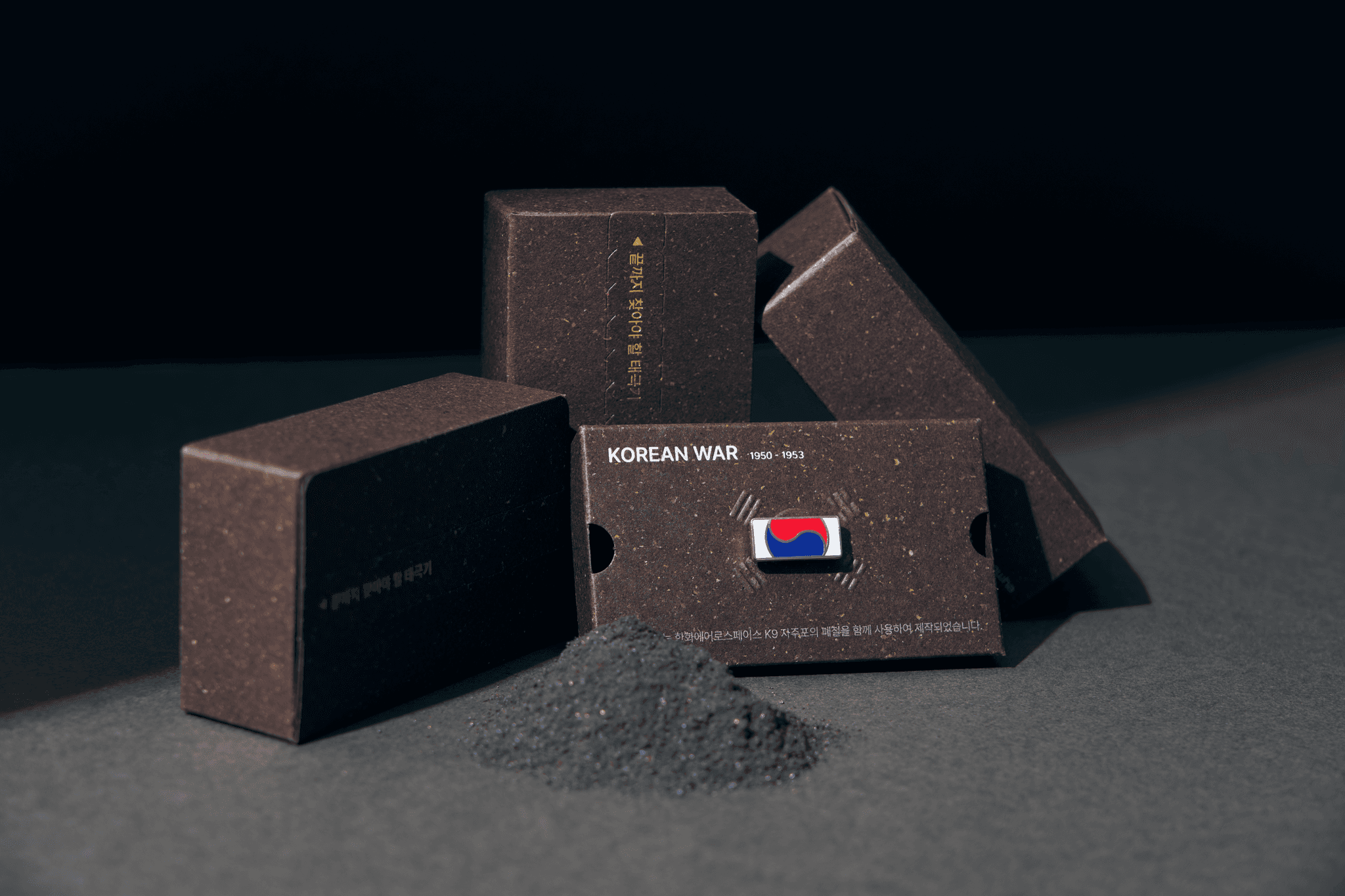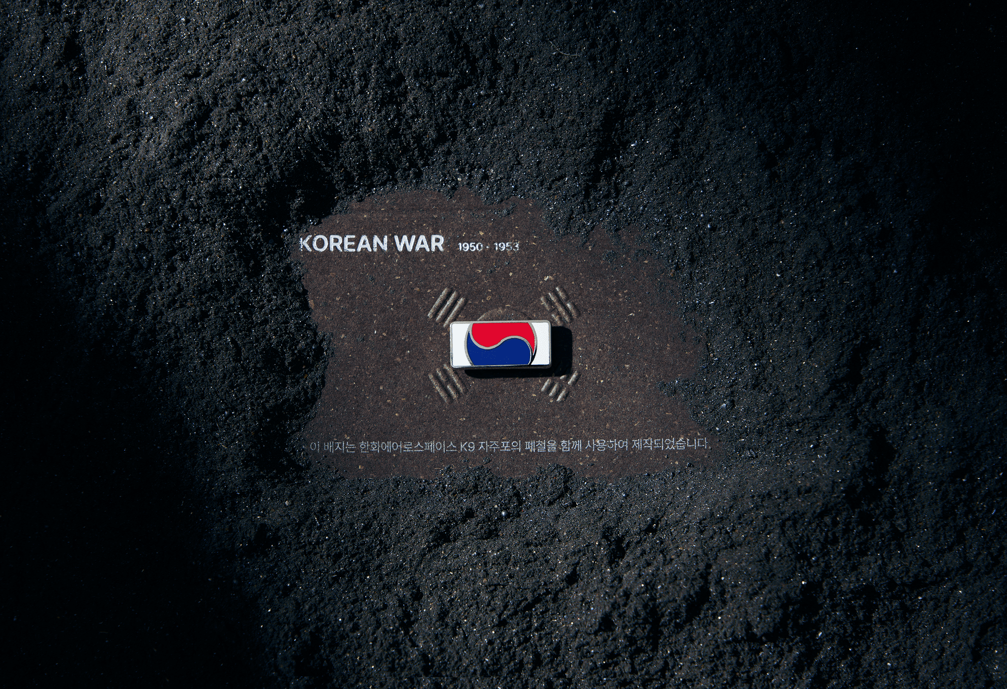 터프스터프에서 제작한 '끝까지 찾아야 할 태극기' 배지는 국가보훈부에서 진행하는 보훈 캠페인의 일환으로, 6.25 전쟁 참전용사의 유해를 발굴하고 모신 함에 태극기를 감싼 모습을 그대로 담아 제작된 보훈 상징입니다. 2025년, 한화 에어로스페이스가 해당 캠페인을 함께 하며, 한화의 방산 사업(K9 - 자주포)에 사용된 폐철을 배지의 소재로 사용하여 상징성을 더하였습니다. 아직 돌아오지 못한 121,723명의 호국영웅에 대한 기억과 감사의 의미를 담은 이 배지는 마지막 한 분의 유해까지 가족들의 품으로 돌려드리겠다는 약속과 사회적 다짐을 표현하였습니다.